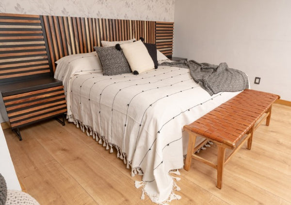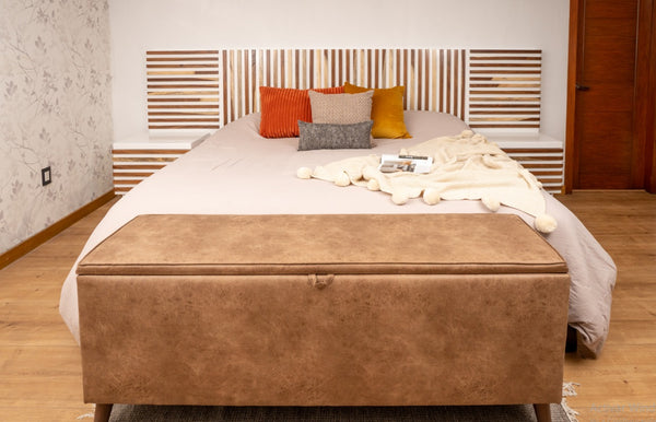 Su auténtico diseño de líneas en parota sólida dotará de mucha originalidad a tu dormitorio.