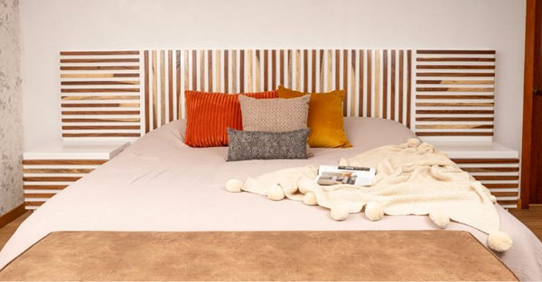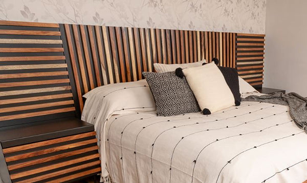 Su auténtico diseño de líneas en parota sólida dotará de mucha originalidad a tu dormitorio, permitirán crecer el tamaño de tu cabecera king size modelo Noruega.