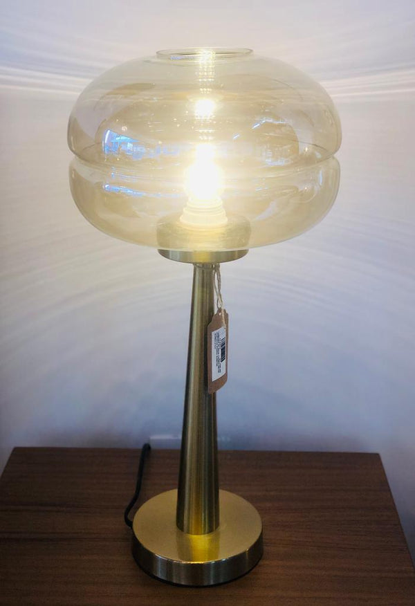 LÁMPARA DE MESA CON CUERPO DE METAL Y PANTALLA DE VIDRIO