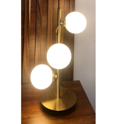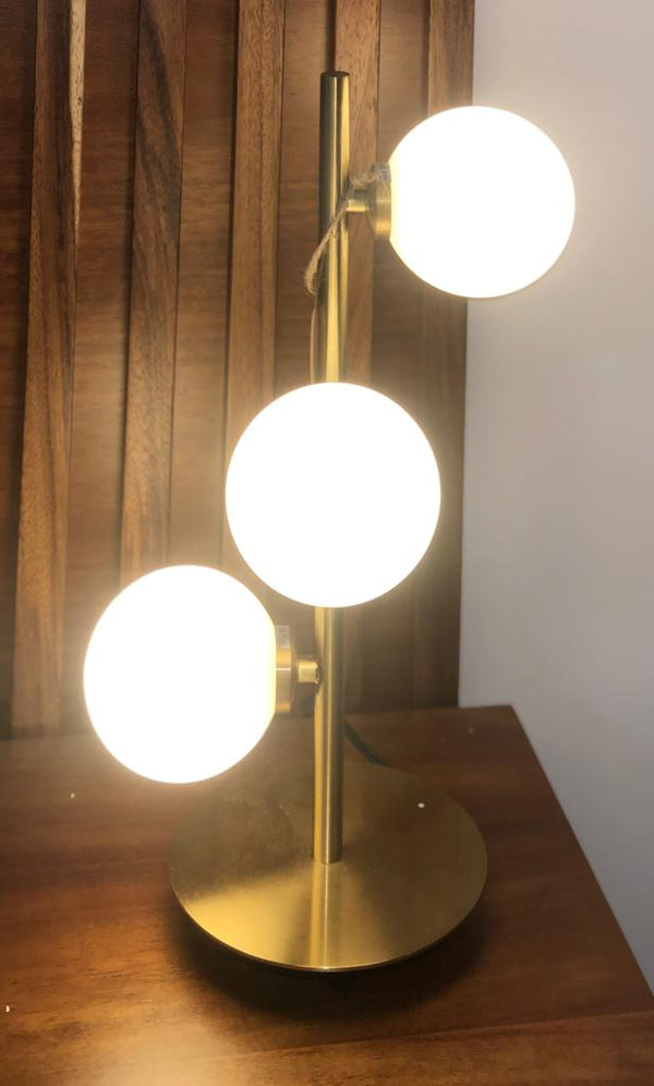 LÁMPARA DE MESA DE METAL Y ESFERAS DE VIDRIO BLANCO