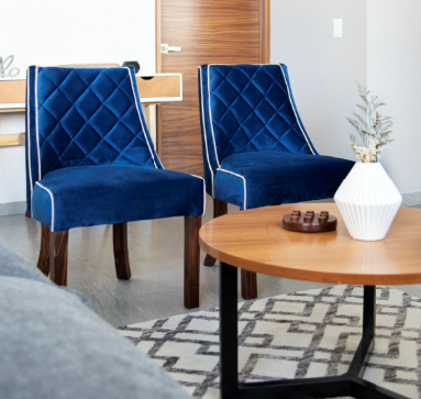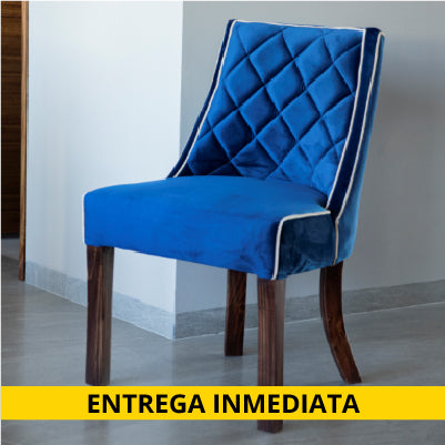 Material: Patas de pino color nogal, tapizado con terciopelo azul rey