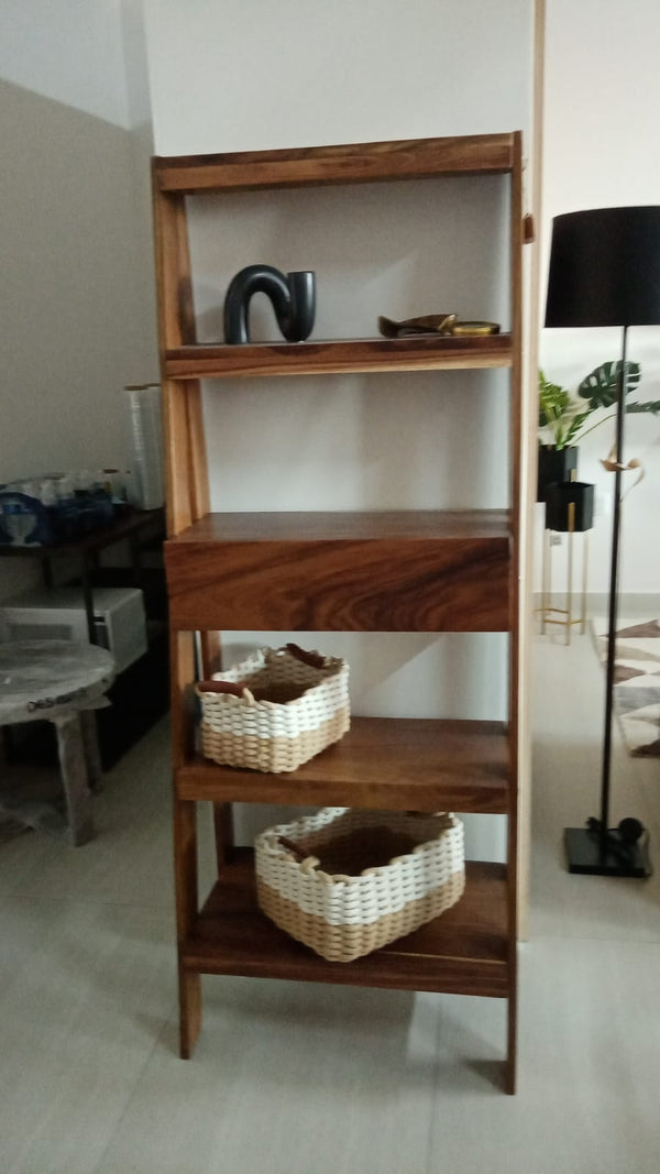Un librero que se destaca por su hermosa estructura en escalera y su cajón fabricada en madera parota y sus vetas lucen en cada cm de la torre.